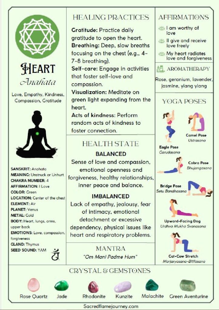 The heart chakra is right in the center of your chest, acting like a bridge between the lower chakras (all about physical and survival stuff) and the upper ones (intuition and your spiritual side).